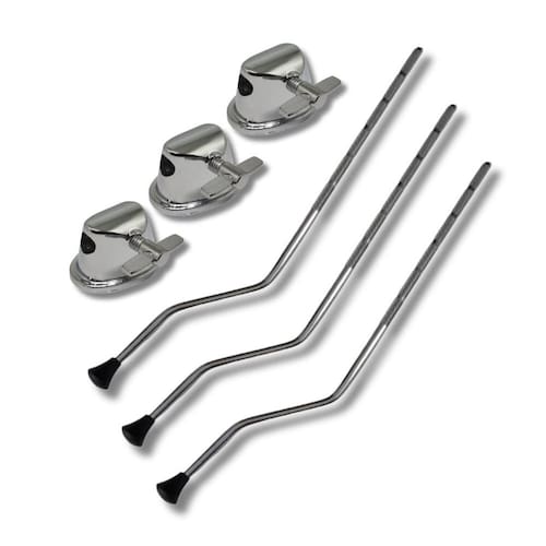 Kit Pé de Surdo Kit 3 peças Metal Cromado Pé Borracha 10mm 47cm + 3 Canoas para Pé de Surdo ou Tom holder de Garfo 8.2