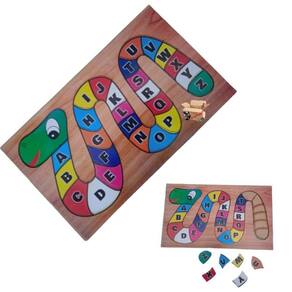 Kit brinquedo pedagógico em madeira 2 quebra cabeça cobra alfabeto e números alfabetização em mdf