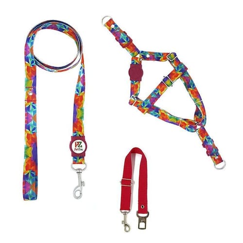Peitoral, guia e adaptador de cinto de segurança para cachorros