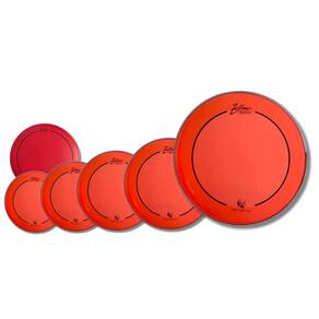 Pensando numa melhor sonoridade para os tons, criamos uma pele de filme duplo um pouco mais fina. Um filme vermelho de 0,188mm sobreposto por um transparente de 0,125mm, criando assim uma pele mais dinâmica e com um visual incrível.