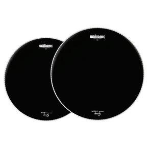 Pele porosa com filme simples 10 mil de espessura Porosidade com acabamento preto Boa durabilidade com excelente controle de harmônicos e ressonância Semelhante a Remo Coated e Evans Coated acessíveis Williams é uma marca brasileira de peles importadas Pele acessível com bom custo x benefício