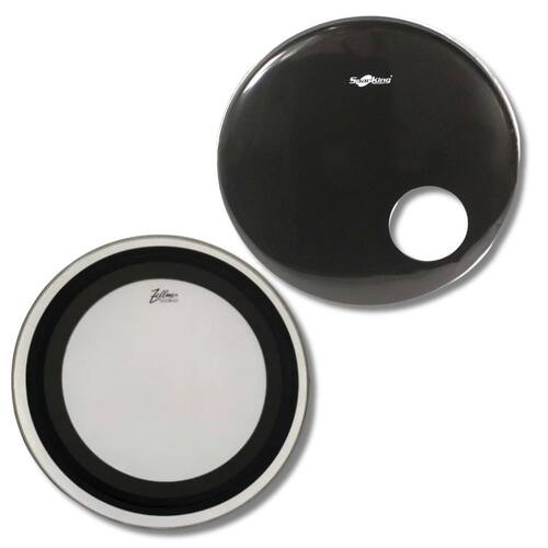 Kit Pele 22 Sonicboom com Abafador Ajustável Filme Duplo Zellmer + Pele 22'' Resposta Bumbo Preta Com Furo Spanking