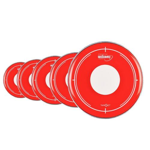 4 Peles RDT2 Vermelha Dot Filme Duplo Hidráulica Williams Pele de filme duplo VERMELHA transparente com óleo e Dot Espessura: 7 mil milésimo de polegada ou 0.188mm cada filme Pele com bola branca central indicada Focada em um som de frequências intermediárias, com ataque definido, Controle de harmônicos e excelente durabilidade