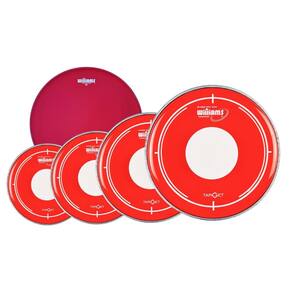 Pele dupla e porosa com filme duplo 10 mil de espessura cada filme Porosidade com acabamento preto Possui óleo entre as peles, no formato de pele hidráulica Boa durabilidade com excelente controle de harmônicos e ressonância Semelhante a Remo Pinstripe Coated e Evans Hydraulic Coated acessíveis Williams é uma marca brasileira de peles importadas Pele acessível com bom custo x benefício