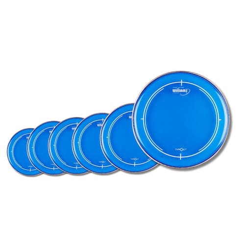 pele de filme duplo na cor azul 2 filmes com espessura de 7 mil cada possui óleo entre as peles, no formato de pele hidráulica ótima durabilidade com bastante punch e ataque bom controle de sobras semelhante a Remo Pinstripe Ebony e Evans Black Chrome acessíveis williams é uma marca brasileira de peles importadas pele acessível com bom custo x benefício