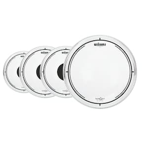 Marca: Williams Modelo: Dt2 Pele de filme duplo transparente 2 filmes com espessura de 7 mil cada Possui óleo entre as peles, no formato de pele hidráulica Ótima durabilidade com bastante punch e ataque Dot bola central para potencializar o punch, durabilidade e definição Bom controle de sobras Semelhante a Remo Pinstripe e Evans EC2 acessíveis em característica sonora