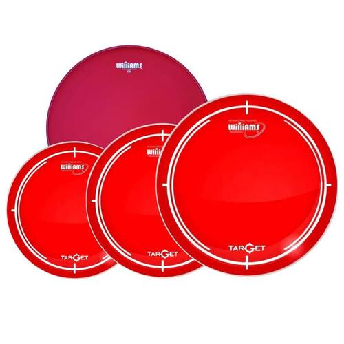 Pele de filme duplo na cor vermelha 2 filmes com espessura de 7 mil cada Possui óleo entre as peles, no formato de pele hidráulica Ótima durabilidade com bastante punch e ataque Bom controle de sobras Semelhante a Remo Pinstripe e Evans G2 e EC2 acessíveis Williams é uma marca brasileira de peles importadas Pele acessível com bom custo x benefício