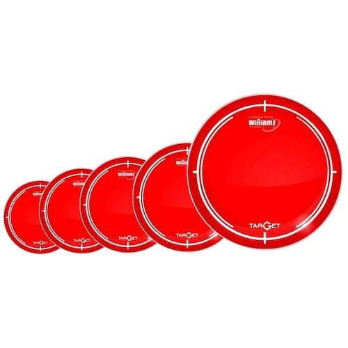 Pele de filme duplo na cor vermelha 2 filmes com espessura de 7 mil cada Possui óleo entre as peles, no formato de pele hidráulica Ótima durabilidade com bastante punch e ataque Bom controle de sobras Semelhante a Remo Pinstripe e Evans G2 e EC2 acessíveis Williams é uma marca brasileira de peles importadas Pele acessível com bom custo x benefício