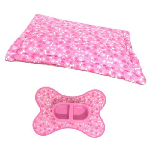 Kit Pet Rosa - 4 peças colchonete, tapete, comedouro e bebedouro Kit acompanha: Colchonete Rosa tamanho M: Comprimento: 52 cm Largura: 70 cm Altura: 7 cm Tecido gorgurinho; Estampa rosa Enchimento de manta acrilica; Com costura reforçada; Totalmente lavável; Tapete pet para comedouro e bebedouro na cor rosa 22 cm comprimento 16 cm de largura. Comedouro e bebedouro 500 ml na cor rosa.