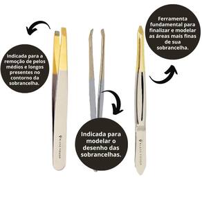 Seu formato permite mais precisão na pega dos fios, e é ferramenta fundamental para finalizar e modelar as áreas mais finas de sua sobrancelha, evitando pegar fios não desejados.