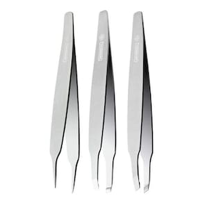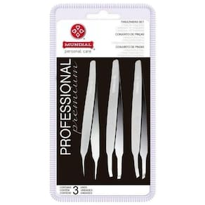 O kit vem com 3 pinças: Pinça fina: indicada para desencravar e remover pelos em fase de crescimento; Pinça reta: indicada para a remoção de todos os tipos de pelos; Pinça diagonal: indicada para extrair os pelos um a um pela raiz. Material todo em Aço Inoxidável. Esterilizável em Estufa Autoclave. Design ergonômico: mais controle e precisão aos movimentos. Para melhor conservação de seus produtos evite quedas, mantenha-os secos e lembre-se que são produtos pessoais.