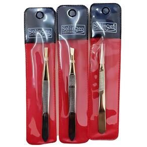 Kit Pinças Solingen Sobrancelhas Profissional Chanfrada Reta Agulha