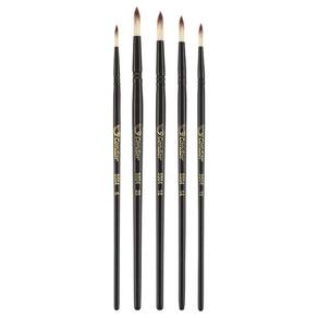 Possuem filamentos sintéticos mesclados de alta durabilidade e flexibilidade, para pinceladas suaves e precisas.Contém 5 pincéis.TAMANHOS: 6, 10, 14, 16 e 20.INDICAÇÃO DE PINTURA: Para pinturas em madeira, papel, tela, superfícies suaves como vidro e metal.Formato: Redondo.Composição: Filamento sintético, material sintético, madeira e metal.
