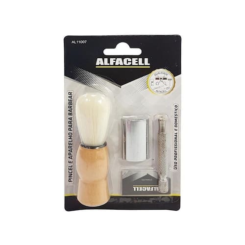 Kit Pincel E Aparelho Barbear Profissional Alfacell + Lâmina
