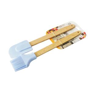 KIT PINCEL E ESPÁTULA DE SILICONE COM CABO DE BAMBU C/ 2 PÇS - CA09597