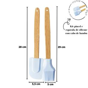 Informações Técnicas: Composição: Silicone e Bambu. Comprimento do pincel: 29cm. Comprimento da espátula: 28cm. Largura do pincel: 5cm. Largura da espátula: 5,5cm. Peso: 90gramas.