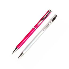 Caneta: Metal, resina termoplástica, polipropileno, tinta à base de pigmentos e solventes. Lapiseira: Resina termoplástica, polipropileno e metal.