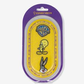 Se você ama o mundo de Looney Tunes e mais ainda deixar as suas coisas com a sua personalidade, a gente te ajuda Com esse kit pin você traz seus personagens favoritos para o seu mundo São 3 pins feitos em metal Zamak, para você personalizar sua mochila, roupas e tudo o que você quiserO produto é produzido em território nacional, feito em Zamak, com tarraxas de silicone que os fixam muito bem evitando que caiam, possui detalhes incríveis que vão fazer você se apaixonar Com uma pintura perfeita que não risca e nem desbota Se você quer deixar sua mala ou roupas ainda mais estilosas, esse kit é para você Não importa qual é a sua aventura, esses pins te acompanham em todos os lugaresEspecificações:Pernalonga: Altura: 04cmLargura:02cmComprimento: 01mmPiuPiu: Altura: 04cmLargura: 03cmComprimento: 01mmLogo Warner: Altura 03cmLargura: 3,5cmComprimento 01mm Cuidados e recomendações de usoNão recomendado para crianças pequenas.Risco: Contém peças que podem ser ingeridas.Cuidado ao manusear pode perfurar a pele.Utilizar somente uma flanela para tirar o pó.