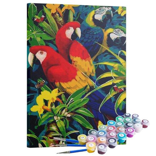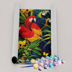 Kit Pintura Terapêutica - Araras Pintura Numerada, ideal para decorar seus ambientes com uma arte feita por você