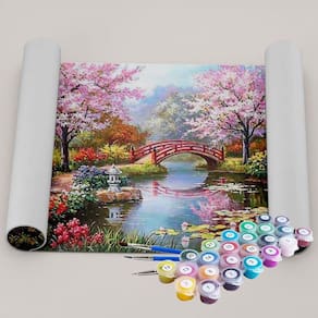 Kit Pintura Terapêutica - Jardim Oriental Pintura Numerada, ideal para decorar seus ambientes com uma arte feita por você O Kit Pintura Terapêutica contém:- 01 tela em algodão 40x50cm numerada original Maue Art Store;- 01 Jogo de tintas acrílicas numeradas;- 03 pincéis;- 01 folha de papel numerada impressa;- 01 Guia para as tintas;- Adesivos numerados; Características:- Kit completo para sua nova obra de arte, incluindo seus acessórios;- Tela de algodão 100% tecido, com superfície canvas premium para pintura;- Peso dos kits: aproximadamente 200g;- Pode haver variação de tonalidade de cor das tintas;- Moldura não inclusa Instruções:Para pintar é muito fácilAdesive as suas tintas de acordo com o Guia para as tintas;Desenrole a tela em um local plano;Molhe os pincéis na água;Abra o potinho de tinta;Molhe o pincel com um pouco de tinta;Pinte a área indicada com a numeração do potinho de tinta;Preencha a tela com todas cores; BenefíciosO hobby Pintura Terapêutica - Além de ser muito fácil, relaxante e se tornar uma decoração para sua casa, possui os seguintes benefícios:- Saúde;- A conclusão de um artesanato ajuda a melhorar a autoestima realizadora da atividade;- Pode ajudar a recuperar e manter a saúde física, emocional e mental;- Ajuda a melhorar a destreza manual;- Treina o cérebro para aumentar a concentração e a atenção;- Ajuda a melhorar a paciência e a disciplina;- Diminui o estresse emocional.