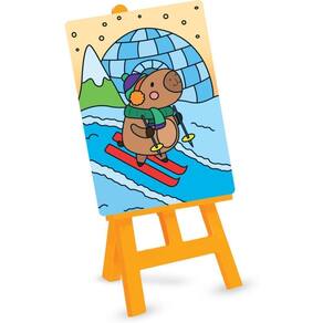 Contém: 1 cavalete 24cm de altura em plástico 4 telas em madeira 6 tintas guache 1 pincel