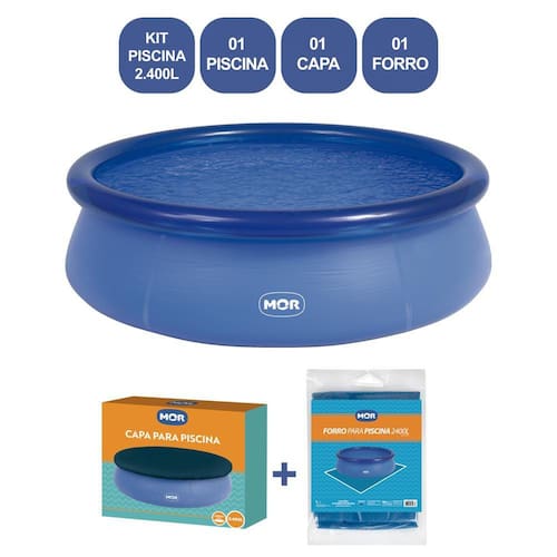 A dica do verão é a Piscina Inflável 2.400 litros! Fácil de montar, ela não possui estrutura e a lona é reforçada com uma tela tramada entre as lâminas, que proporciona maior resistência. É isto mesmo! A sua única estrutura é a água, evitando quinas e peças rígidas que podem ferir os pequenos. Para facilitar ainda mais a montagem, a Piscina Inflável acompanha DVD com instruções de montagem, válvula de deságue, válvula de filtro e kit reparo. Para animar ainda mais a brincadeira, vale abusar dos infláveis divertidos e bem coloridos! Atenção! Nunca deixe crianças sozinhas perto da água sem supervisão de um adulto.