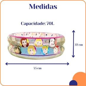 PISCINA PRINCESAS DISNEY 70 LITROSFácil montar e manter, a piscina inflável da Etitoys é a melhor opção para se refrescar com a família e amigos. Pegue o traje de banho, os chinelos e o protetor solar, e prepare-se para passar momentos inesquecíveis ao sol.Para os mais pequenos!Sua capacidade de 70 litros a torna em um lugar de diversão adequado para meninos e meninas de até 2 anos de idade, onde eles poderão jogar e aproveitar de horas na água.Aviso legalIdade mínima recomendada: 3 anos.COLETE INFLÁVEL PRINCESAS 43X35CMCom a Bóia Colete das Princesas da Etitoys, aproveitar os dias de calor na piscina com segurança se tornou muito mais simples e divertido.Com as princesas, as meninas estarão livres para usar a imaginação nas horas de brincadeira, com a liberdade e segurança que a bóia colete oferece.- Dimensões da Peça: 35 x 10 x 43cm- Quantidade Master: 36 Peças- Material: 100% PVC- Cor: Rosa com Estampa Princesas- Marca: Etitoys- Origem: China- Contém: 1 unidadeCaracterísticas:- Peso máximo suportado: 30kg- Dimensões aproximadas do produto inflado: 43x35cm- Pode regular até 35x40cmCuidados:- Este produto deve ser montado por um adulto.- Este produto não é um equipamento salva-vidas.- Crianças devem utilizar este produto sob a supervisão de um adulto.- Guarde estas instruções para futuras consultas.Óculos- Dimensões: 14,5 x 4,5 (CxL)Lentes em poliestireno, proteção ocular e do nariz em PVC macio, tiras reguláveis em borracha, regulagem entre as lentes em PVC. Ean: 7899739202198