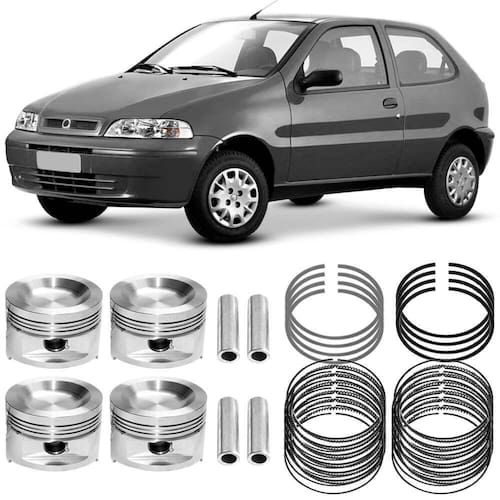 O pistão do motor é uma peça que fica localizada no interior dos cilindros, na verdade cada cilindro possui um pistão. Este componente que na maioria das vezes é fundido em ligas leves se movimenta retilineamente em dois sentidos, para cima e para baixo, e tem por principal função receber, em toda sua área superior, a explosão da mistura de ar e combustível. A explosão da mistura de combustíveis gera um deslocamento de massa de gases dentro da câmara de combustão e o pistão recebe esta força e passa a diante. Os anéis de pistão são peças muito importantes para o perfeito funcionamento do motor. Estas peças de forma circular são fabricadas com uma liga de aço-carbono com um teor de carbono bem elevado, o que da dureza a esses componentes, com certa fragilidade.