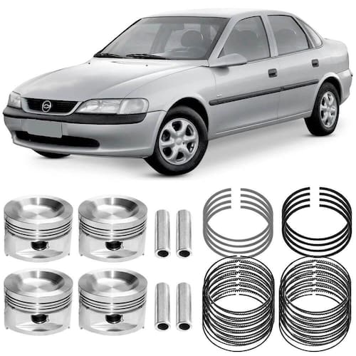 O pistão do motor é uma peça que fica localizada no interior dos cilindros, na verdade cada cilindro possui um pistão. Este componente que na maioria das vezes é fundido em ligas leves se movimenta retilineamente em dois sentidos, para cima e para baixo, e tem por principal função receber, em toda sua área superior, a explosão da mistura de ar e combustível. A explosão da mistura de combustíveis gera um deslocamento de massa de gases dentro da câmara de combustão e o pistão recebe esta força e passa a diante. Os anéis de pistão são peças muito importantes para o perfeito funcionamento do motor. Estas peças de forma circular são fabricadas com uma liga de aço-carbono com um teor de carbono bem elevado, o que da dureza a esses componentes, com certa fragilidade.