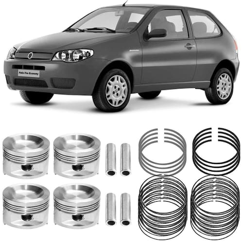 O pistão do motor é uma peça que fica localizada no interior dos cilindros, na verdade cada cilindro possui um pistão. Este componente que na maioria das vezes é fundido em ligas leves se movimenta retilineamente em dois sentidos, para cima e para baixo, e tem por principal função receber, em toda sua área superior, a explosão da mistura de ar e combustível. A explosão da mistura de combustíveis gera um deslocamento de massa de gases dentro da câmara de combustão e o pistão recebe esta força e passa a diante. Os anéis de pistão são peças muito importantes para o perfeito funcionamento do motor. Estas peças de forma circular são fabricadas com uma liga de aço-carbono com um teor de carbono bem elevado, o que da dureza a esses componentes, com certa fragilidade.