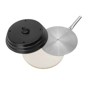 Kit Pizza Para Churrasqueira Com Pá de Pizza Alumínio, Pedra Refratária Redonda 37cm e Abafador Preto