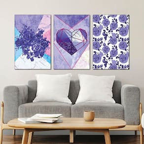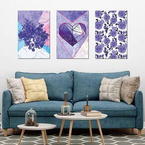Kit Placa Decorativo com Textura 3 un 20x30 Coração e Flores