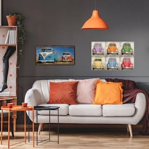 Dimensões: kombis: 30cm x 20cm fuscas: 30cm x 15cm Espressura: 0,3cm Fabricado com 100% madeira de reflorestamento; Acompanha fita dupla face para instalação; Estampa impressa em adesivo de alta resistência; Design moderdo e elegante;
