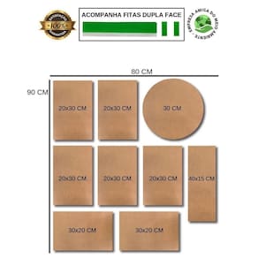 Quantidades: 7 peças 20x30 cm, 1 peça 30x30 cm e 1 peça 40x15 cm