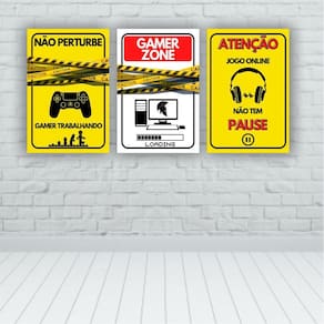 Kit Placas Quadros 3 Pçs 60X40 Gamer Zone Não Perturbe