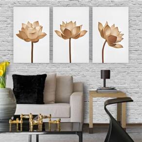 Kit Placas Quadros Sala 3 Pçs 20X30 Floral Rustica