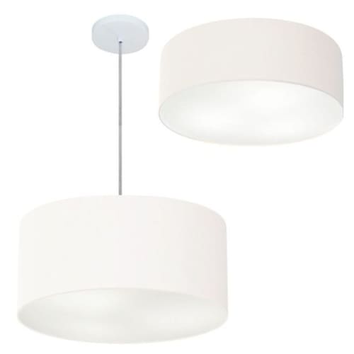 Kit Plafon Cilíndrico Md-3005 e Pendente Md-4019 Cúpula em Tecido 40cm Branco - Bivolt