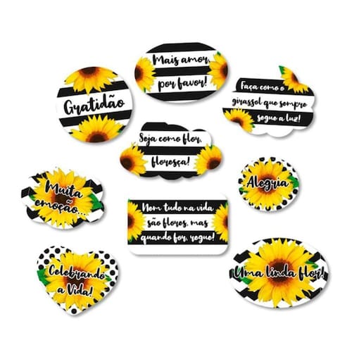 Atenção: imagens meramente ilustrativas.Contém: 09 un - plaquinhas girassol.Uma boa festa é sempre aquela que é bem planejada até nos detalhes, né Pois pensamos nisso justamente para você com kit plaquinhas girassol, decore com um toque a mais de capricho e tenha sua melhor festa agora mesmo confira e adquira o seuCaracterísticas:Kit plaquinhas com 9 unidades na embalagem.Lindas e divertidas frases para deixar sua festa ainda mais gostosa.Material: papel cartonado.