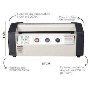 Chegou a solução perfeita para proteger e dar um toque profissional aos seus documentos, crachás e muito mais. Você poderá plastificar qualquer tamanho do crachá ao ofício (ofício, meio ofício, A4, crachá, CPF, título de eleitor, CNH, RG, CGC e CNPJ). Acompanha Polaseal no tamanho 220x307mm que é ideal para plastificações no tamanho A4. O processo de plastificação é rápido e eficiente, economizando seu tempo e permitindo que você produza mais em menos tempo.