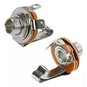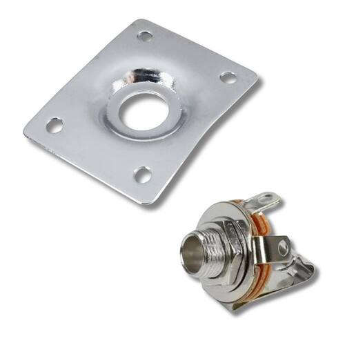 Kit Plate Jack Guitarra Baixo Retangular Metal Cromado Ronsani + Jack Mono J10 P10 Circuito Fechado Guitarra Baixo Violão MXT