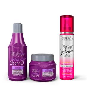 O Kit Platinum Blond Manutenção Desamarelador Forever Liss irá tratar os seus cabelos, eliminando os efeitos causados pela química e ações de fatores como exposição ao sol, piscina, secador e chapinha. Tudo isso graças a seus ingredientes naturais que nutrem os fios e selam as cutículas capilares.