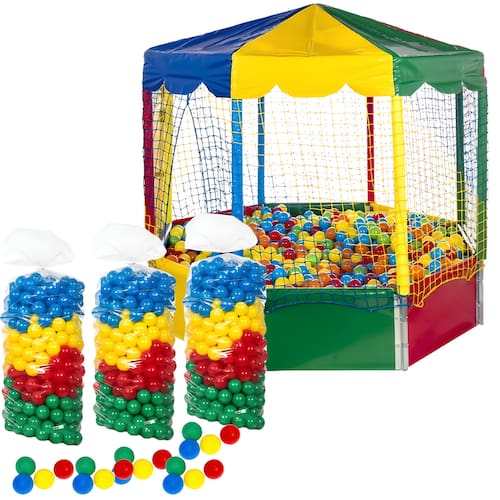 1500 BOLINHAS COLORIDAS Produzidas com materiais de alta resistência e qualidade (proporcionam uma brincadeira alegre e sem riscos); Atóxico (não prejudicam a saúde da criança e proporcionam maior higiene).; Sistema anti quebra (você não perde bolinhas quebradas, e não machuca as crianças); Bolinhas com sistema emborrachado (a bolinha não amassa, você aperta e ela volta na hora);