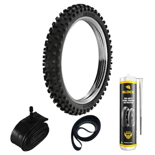 1 - PNEU 60/100-17 33M SH31 1 - CAMARA 17 1 - CINTA DO ARO 17 1 - SELANTE VACINA PARA PNEUS MOTO 300ML BLOCK
