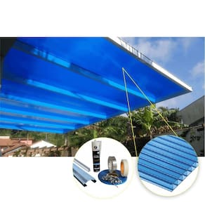 Kit Policarbonato Alveolar Azul 4mm - 8,00m x 6,00m - Perfis Naturais - O que contém este kit:
