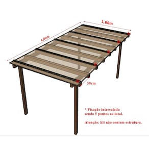 Pode ser aplicado em pergolados/estruturas, claraboias, toldos e garagens desde que seja respeitada as recomendações para a estrutura a seguir