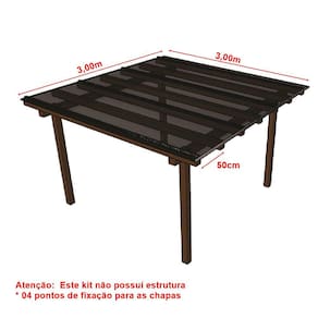 3,00m x 3,00m - Kit Policarbonato Alveolar Fume 4mm - 3,00m x 3,00m - Perfis Naturais - O que contém este kit:
