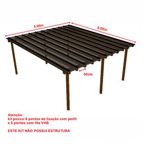 Kit Policarbonato Alveolar Fume 4mm - 5,00m x 6,00m - Perfis Naturais - O que contém este kit: