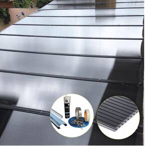 O kit contém todos os itens que você irá precisar, para instalação correta das chapas seguindo as recomendações do fabricante, como perfis de fixação, perfis de acabamento, borrachas e fitas de vedação, parafusos e selantes.