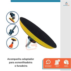 - Não se adapta em moto esmeril de bancada; - Não é indicado para fixar bobina de polimento algodão. - Serve para Lixas de Manta Surface. - Serve para Furadeiras usando o Adaptador que acompanha.