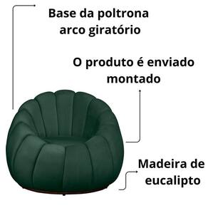 Transforme seu espaço com a sofisticação da Poltrona Giratória Concha! Seu design com acabamento arredondado cria uma decoração orgânica única. Fabricada com estrutura de madeira de eucalipto e revestimento Veludo, oferece conforto e durabilidade excepcionais, graças à espuma D-24. Versátil, ela se adapta perfeitamente em vários ambientes: casa, recepção, sala de estar, quarto e eventos. Renove seu ambiente com elegância e qualidade.